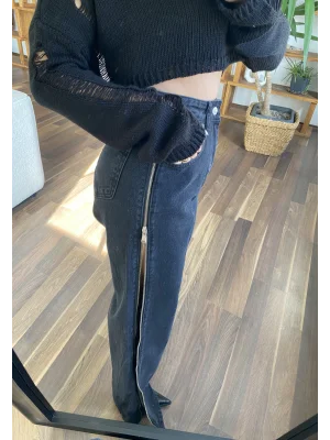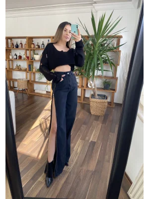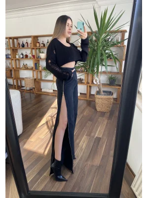 YAN FERMUARLI DÖKÜMLÜ PANTOLON
